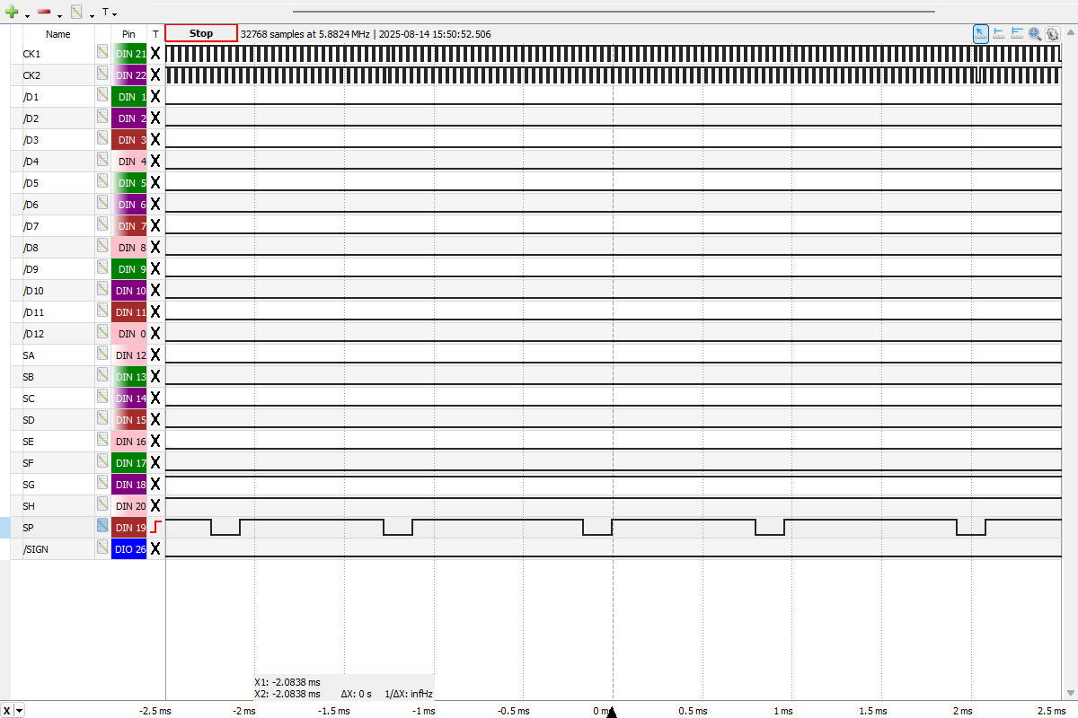by Zero Loop captured with the Digilent Digital Discovery connected to the DCM-50A Platform. MK5011 Clock Frequency at 25 kHz. ![]() |