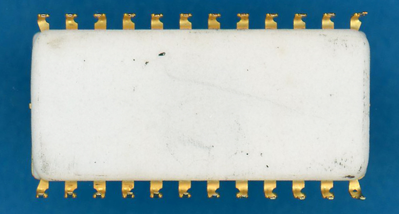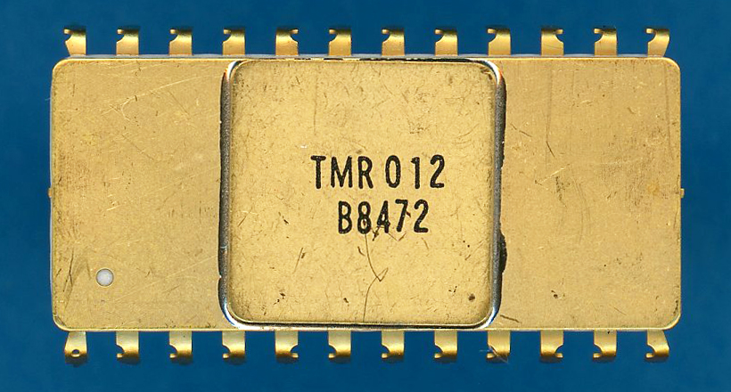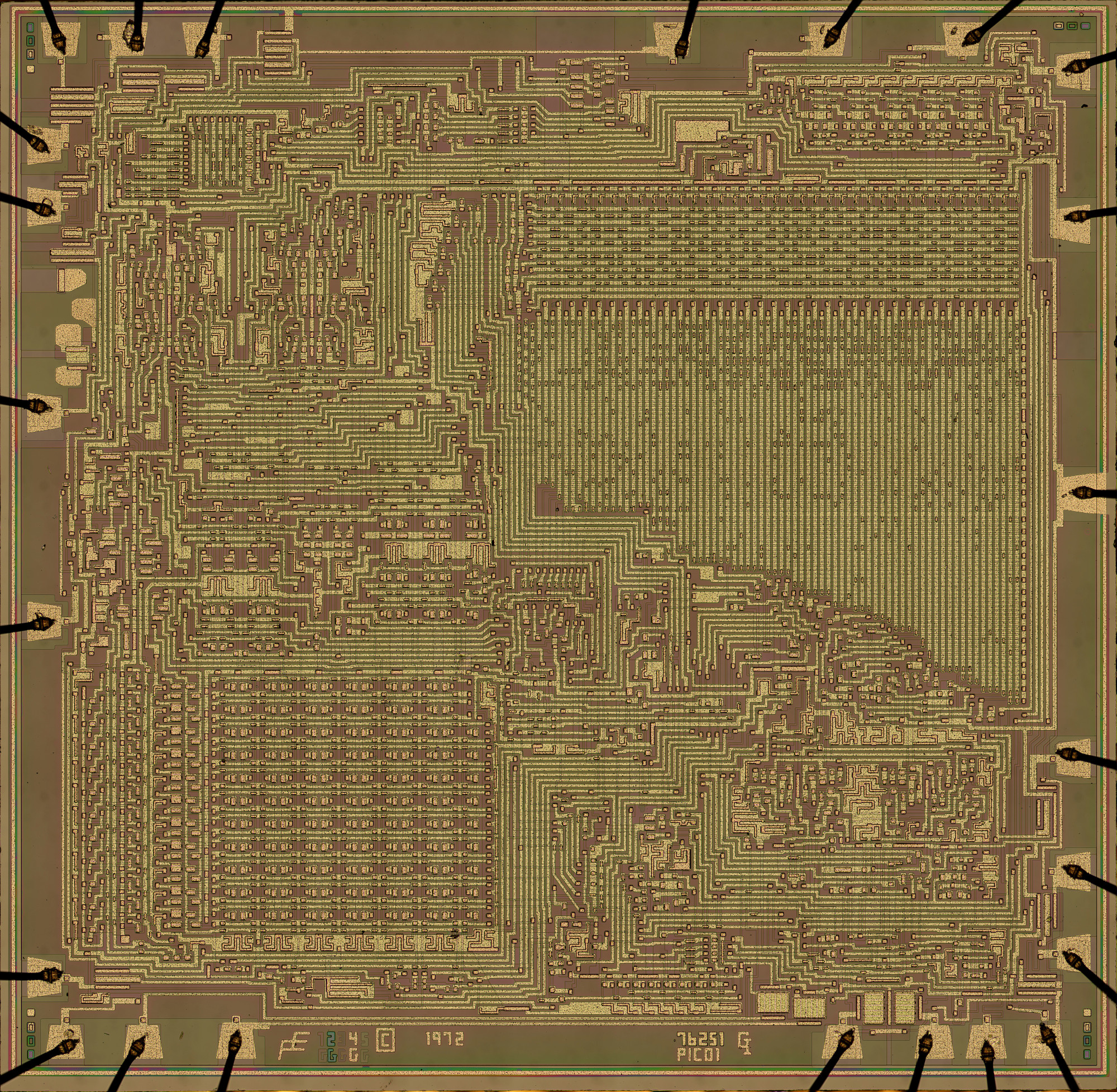 (Version 1) manufactured in January 1973. PMOS Technology, 24-pin Ceramic DIP RISC Processor, 72*27 to 63 Bits Instruction ROM, 3*44 Bits + 1*9 Bits Data SAM. |