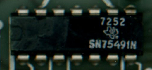 | The Main-PCB of the Interton PC 2008 (Version 1) is centered around a General Instrument TMR 012 single-chip calculator circuit. ![]() |