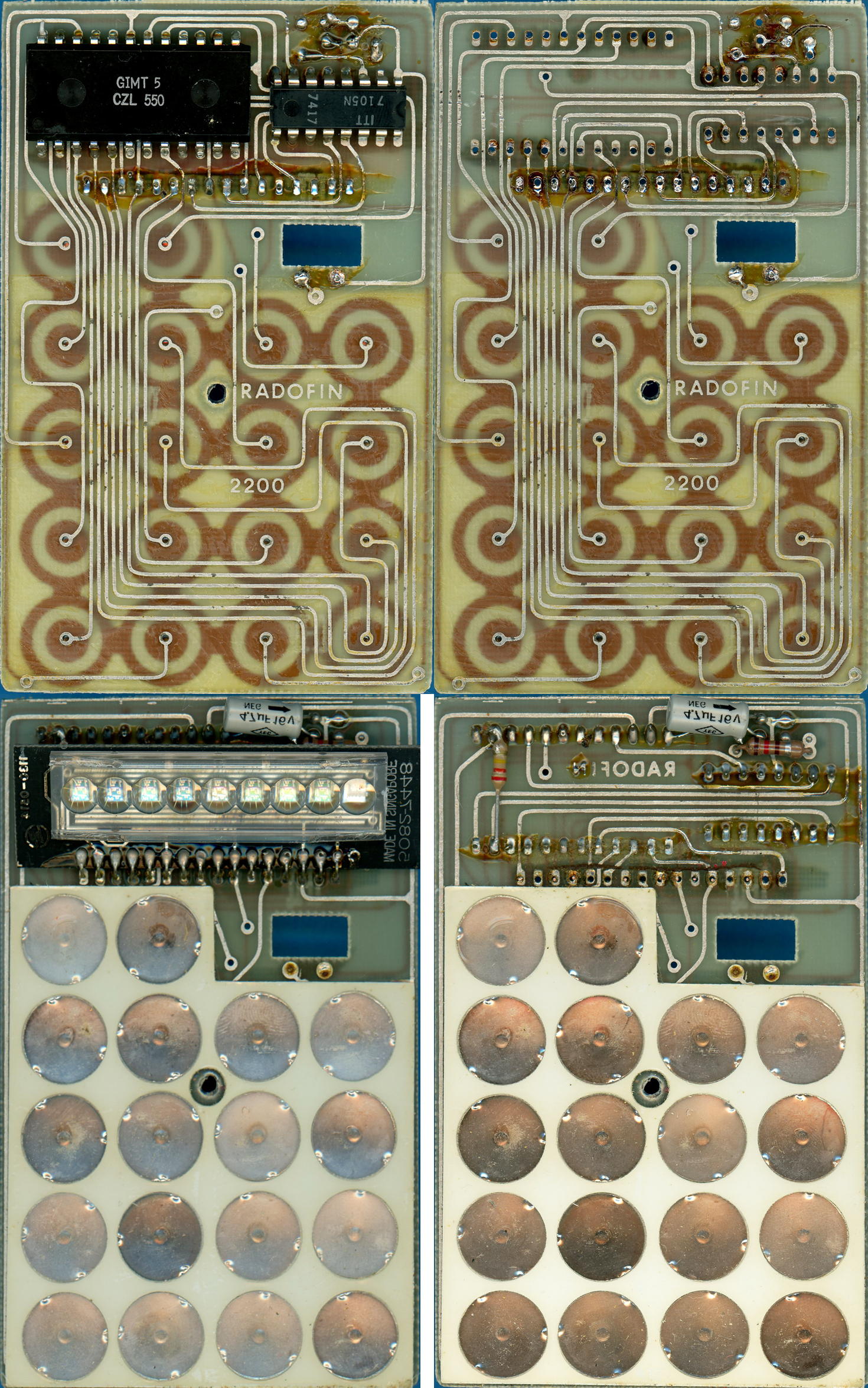 (PCB) of a Radofin Model 2200 calculator manufactured in