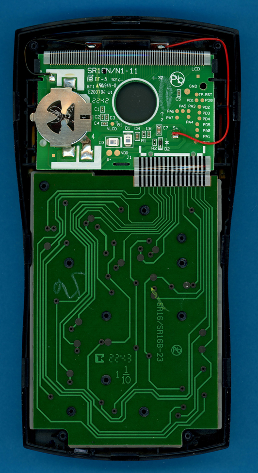 of this TI-30X IIS looks familiar to us. We noticed the SR-16 designation on the upper printed circuit board (PCB) already with earlier calculators.