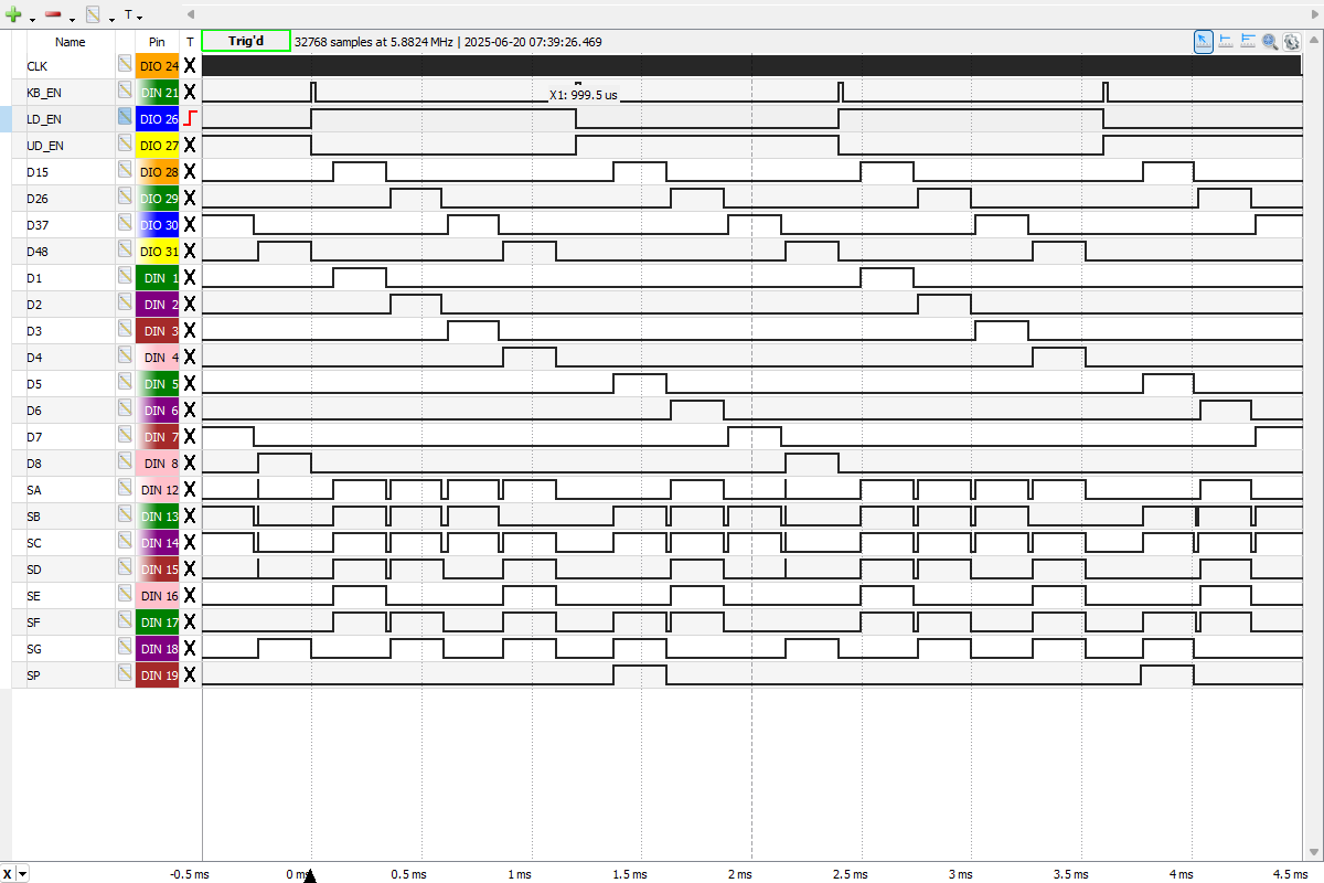 Digital V manufactured in May 1972 while displaying "-104.6790" and captured with the Digilent Digital Discovery connected to the DCM-50A Platform. GI 251F Clock Frequency at 100 kHz. |