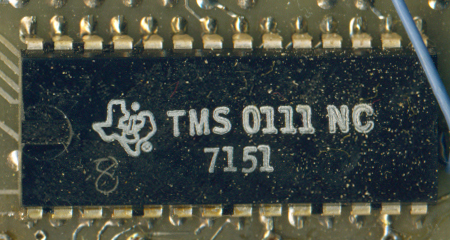 TMS0111 single-chip calculator circuit manufactured in December 1971.