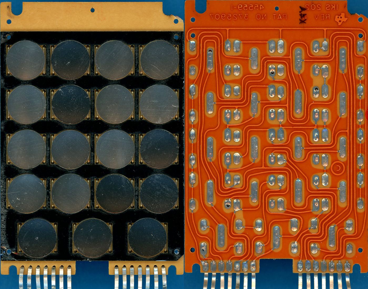 PCB of a TI-2500-II calculator manufactured in January 1975 with its