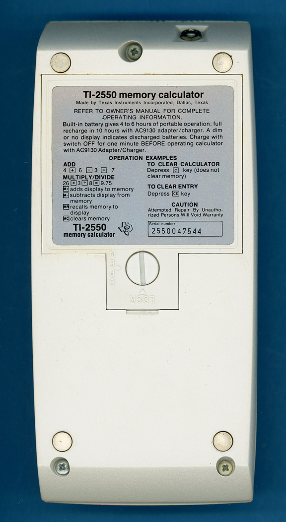 This TI-2550 Version 1 (Display 1) was manufactured in March 1974 by Texas Instruments.