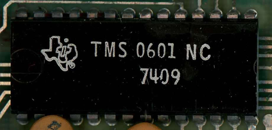 (PCB) of the TI-2550 Version 1 is centered around a TMS0601 single-chip calculator circuit.
