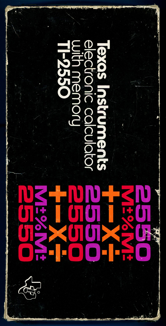 The sales box of an TI-2550 calculator sold in April 1974 in the United States. |