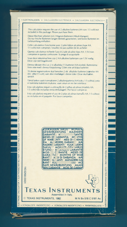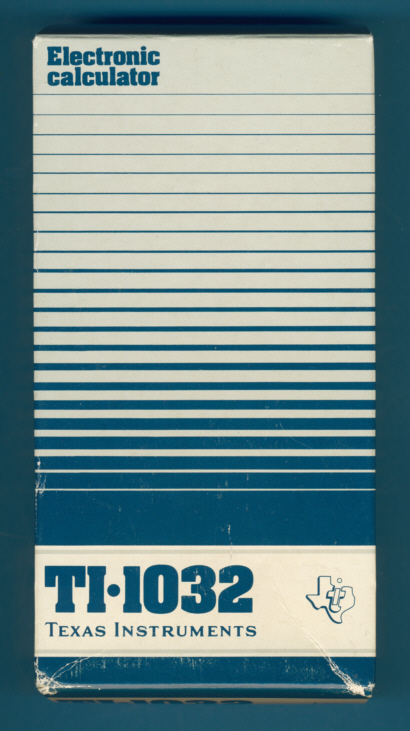 of the TI-1032 sold in Europe around 1982. Both manual and box cover ten different laguages.