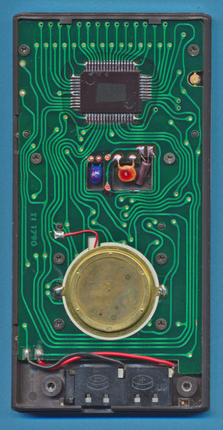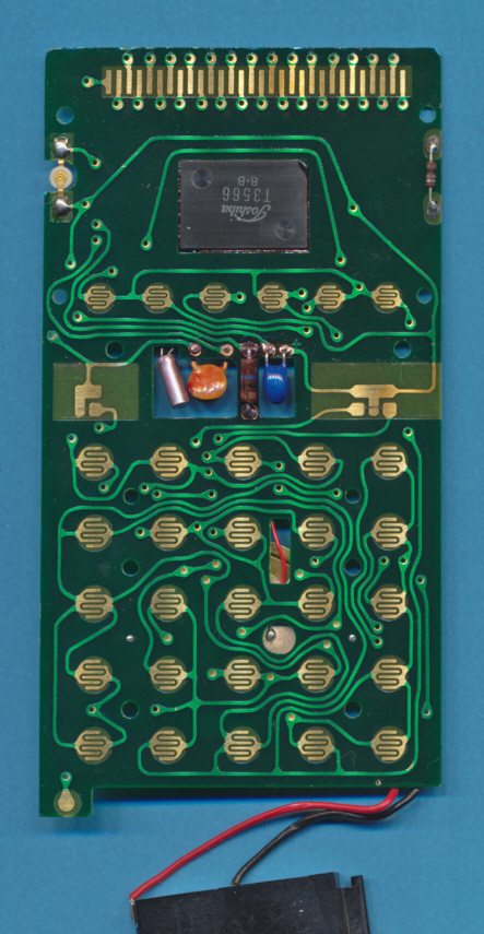 (PCB) of the TI-1790 hides the manufacturer and type of the calculator brain. |