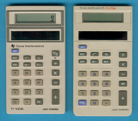 boxes of the TI-1006 showed smaller solar cells and stated "LIGHT POWERED" on the calculator.