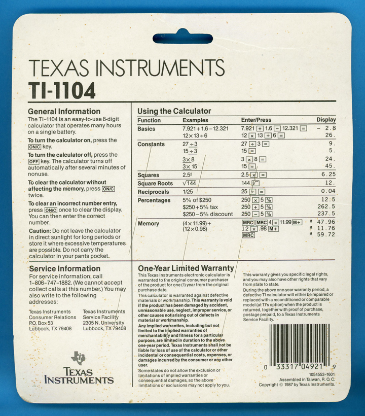 (PCB) of the TI-1104 is borrowed from the TI-1103 of the same era.