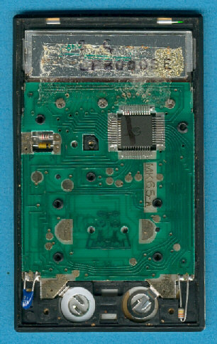 (PCB) of the TI-1755 is centered around a Sharp LI3033MT single-chip calculator circuit. |