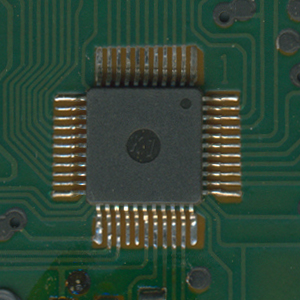 Close-up view of the unknown single-chip calculator circuit. ![]() |