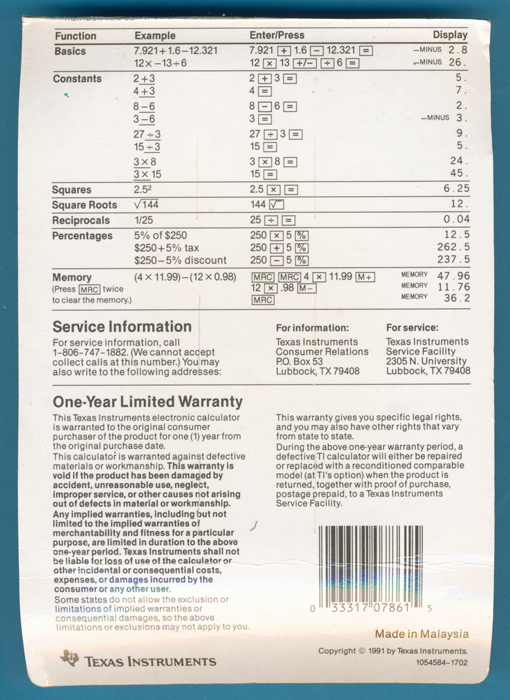 the TI-1766 III calculator sold around 1992 in the United States.![]() ![]() |