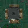 single-chip calculator circuit soldered on a double-sided printed circuit board