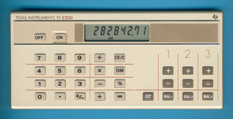 calculator put in a fancy wallet. The TI-2200 Checkwriter introduced in October
