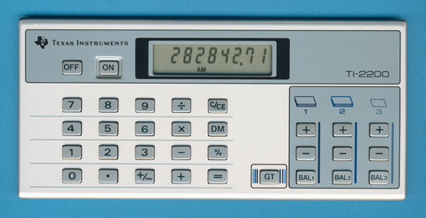 calculator put in a fancy wallet. This TI-2200 Checkwriter introduced in October