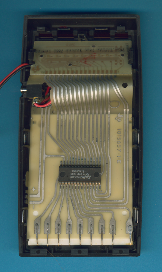 (Flex-PCB) of the TI-1000 is centered around the TMS1992 single-chip calculator circuit.