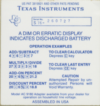 in September 1976 by Texas Instruments in Lubbock, TX (Date code 3876 LTA » week 38 year 1976).