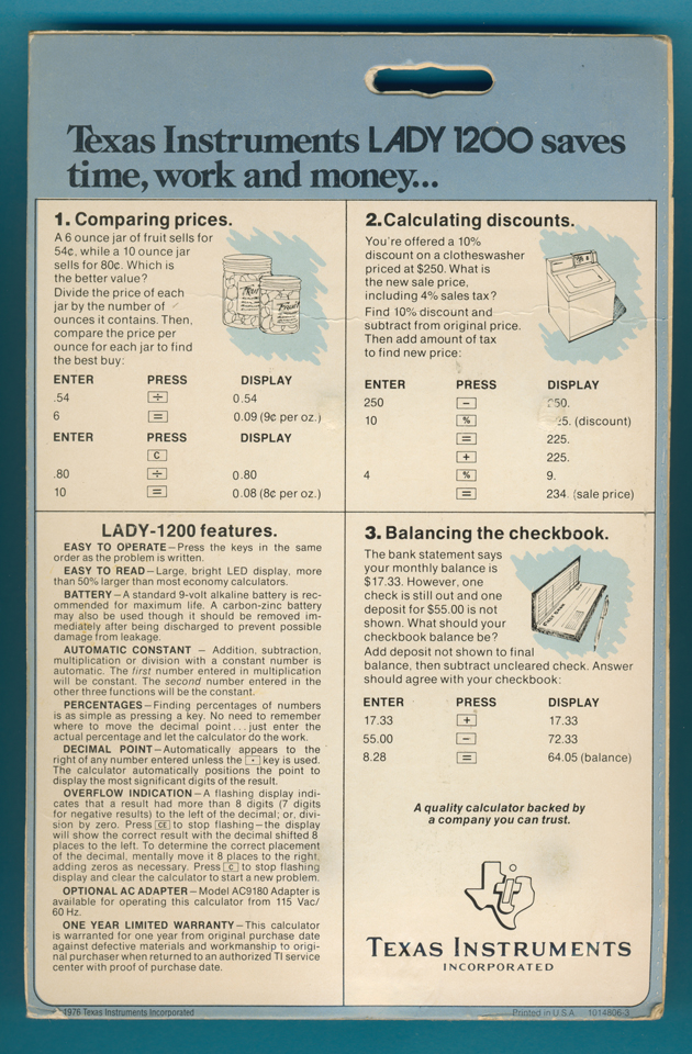 (PCB) of the LADY 1200 is centered around a TMS0972 single-chip calculator circuitt.