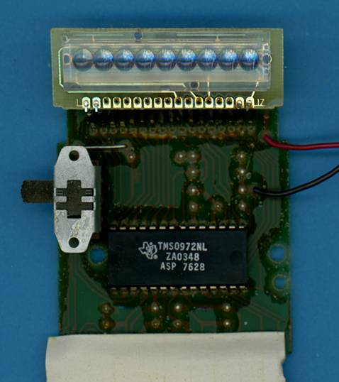 (PCB) of the featured TI-1450 is centered around a TMS0972 single-chip calculator circuit.
