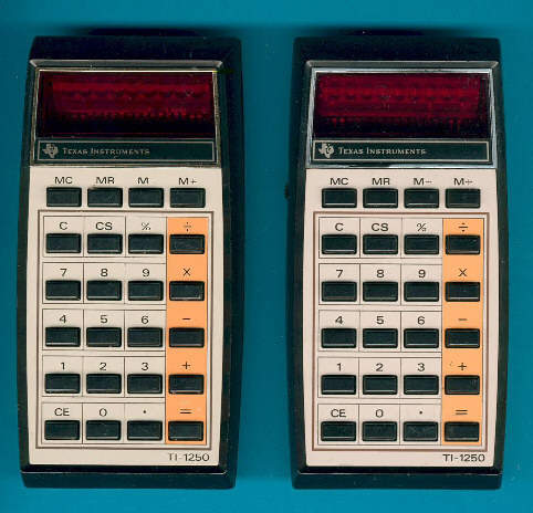 redesign of the TI-1200, the color of the display frame was changed from gold