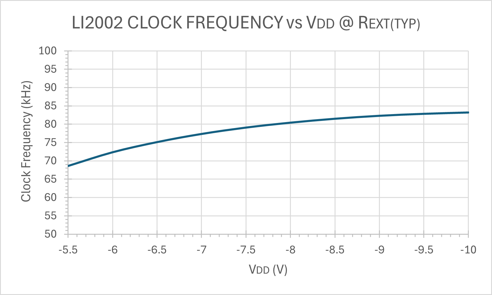 of a LI2002 single-chip calculator circuit. DUT: LI2002 5B2 215 @ VGG = 2 x VDD, REXT = 100 kOhm. ![]() |