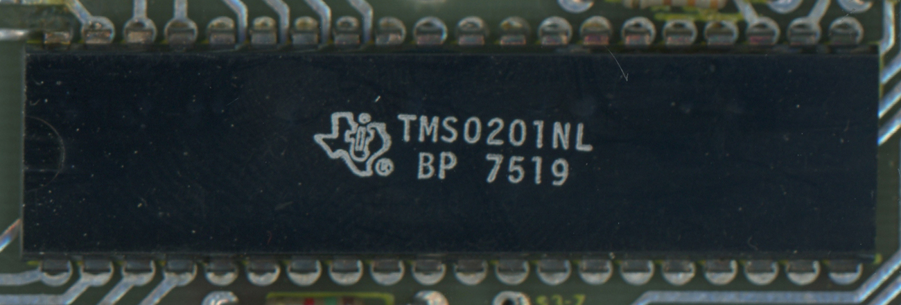 of the TMS0201 Data Chip used with the TI-4000. PMOS Technology, 40-pin DIP, Register Processor, 4 Registers 16*4 Bits SAM. ![]() |