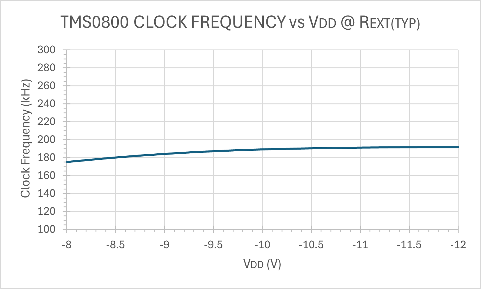 of a TMS0800 single-chip calculator circuit. DUT: TMS0801NCΔ 7421 - J0801 22 @ VDD = -10.0 V, REXT = 100 kOhm. ![]() |