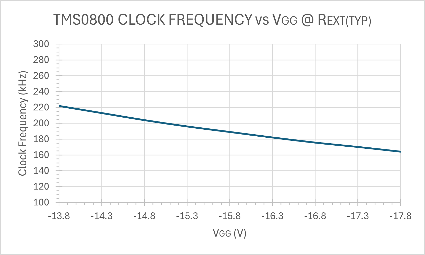 of a TMS0800 single-chip calculator circuit. DUT: TMS0801NCΔ 7421 - J0801 22 @ VGG = -15.8 V, REXT = 100k Ohm. ![]() |