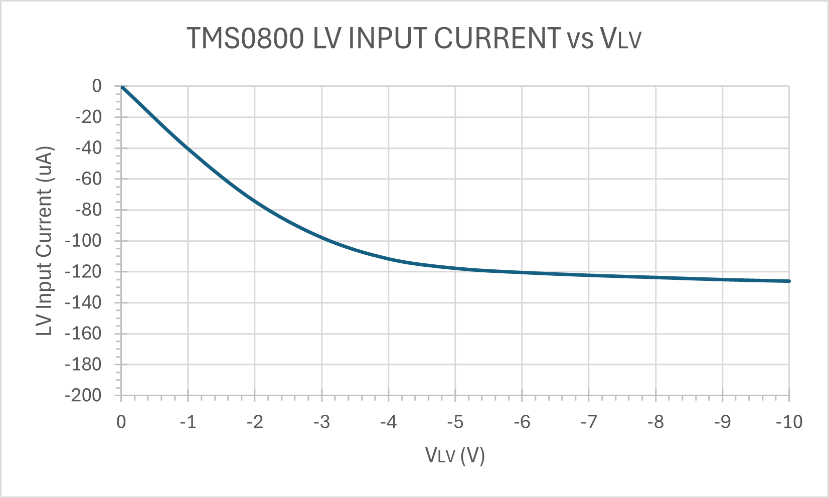 LV Input Voltage of a TMS0800 single-chip calculator circuit. DUT: TMS0801NCΔ 7421 - J0801 22 @ VDD = -10.0 V, VGG = -15.8 V, REXT = 100 kOhm. ![]() |
