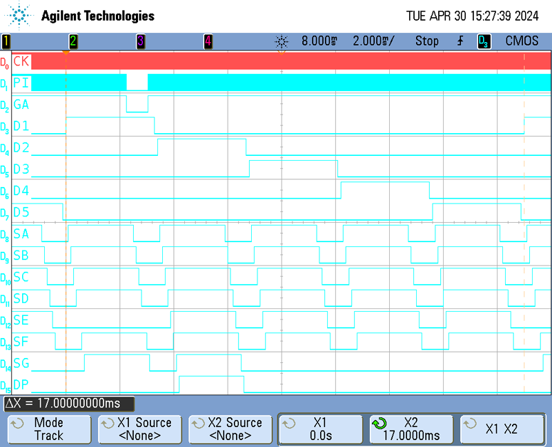 Sequence of the TMS3707NC Five Decade Counter. Clock Input @ 320 kHz, Display "98.000". Display Cycle = 17 ms. ![]() |