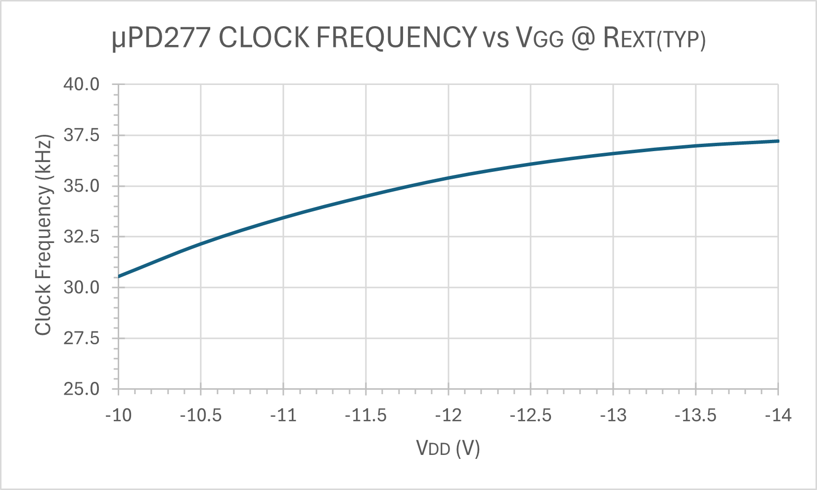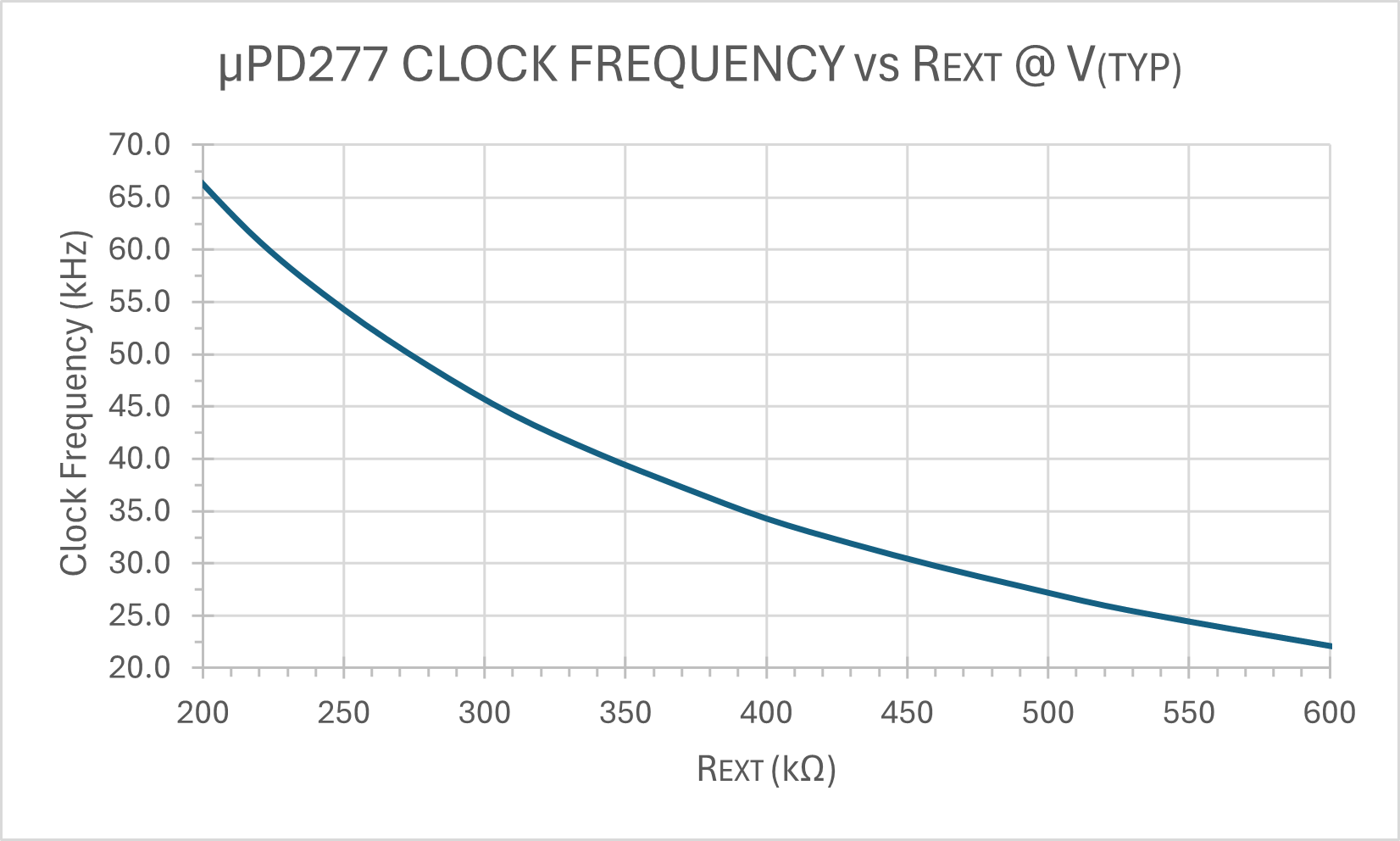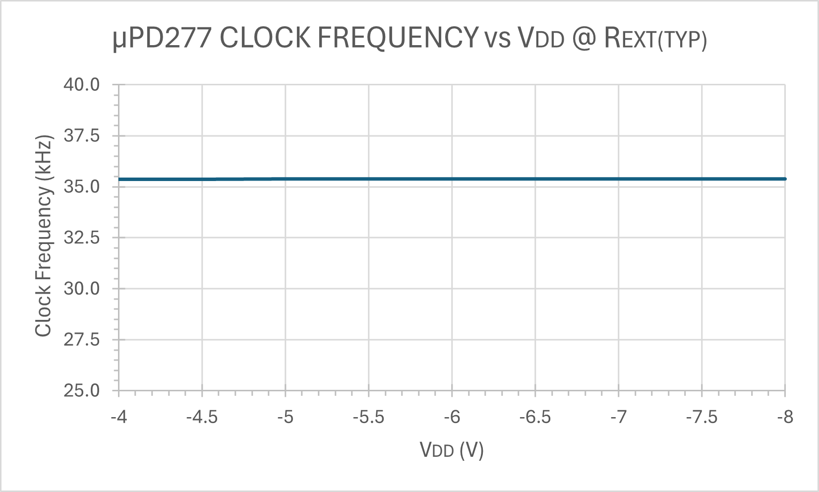 External Resistor of a µPD277 single-chip calculator circuit. DUT: µPD277C H54696 @ VDD = -6.0 V, VGG = -12.0 V, CEXT = 82 pF. ![]() |