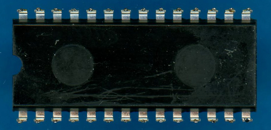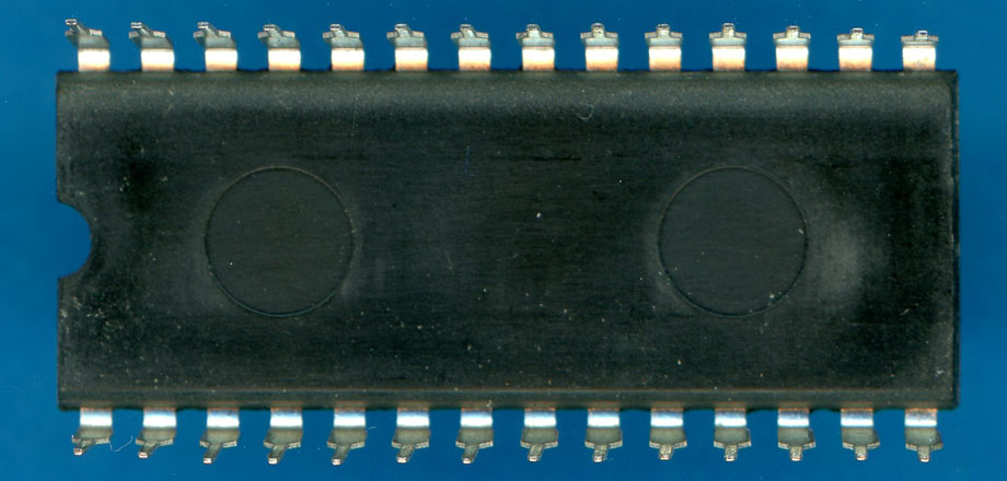of the µPD941 single-chip calculator circuit used with the MBO de Luxe I. PMOS Technology, 28-pin DIP 4-bit serial Register Processor, 256*19 Bits Instruction ROM, 3*48 Bits Data SAM. Manufactured March 1976. ![]() ![]() |