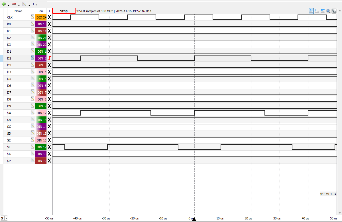 2 captured with the Digilent Digital Discovery connected to the DCM-50A Platform. µPD943 Clock Frequency at 50 kHz. ![]() |
