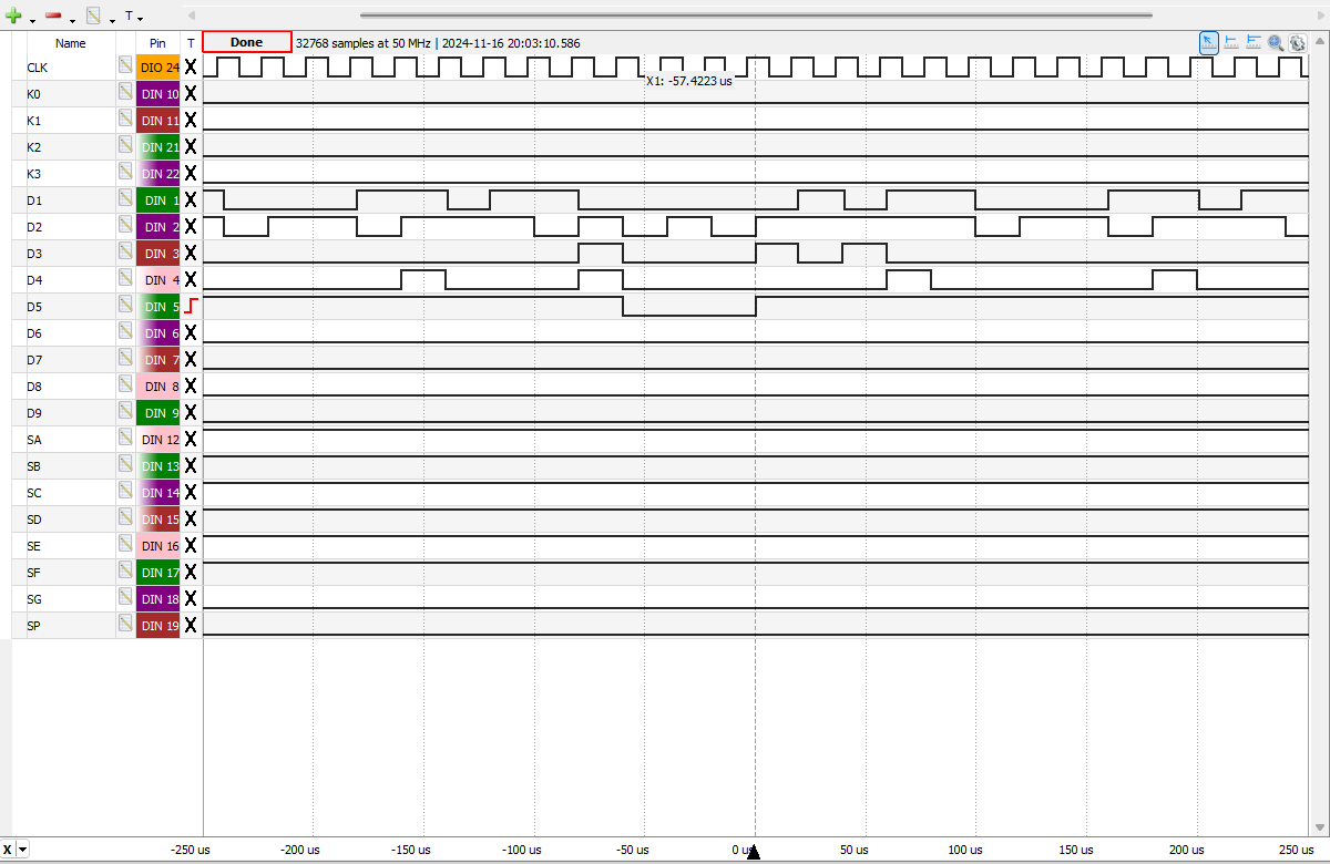 1 captured with the Digilent Digital Discovery connected to the DCM-50A Platform. µPD943 Clock Frequency at 50 kHz. ![]() |