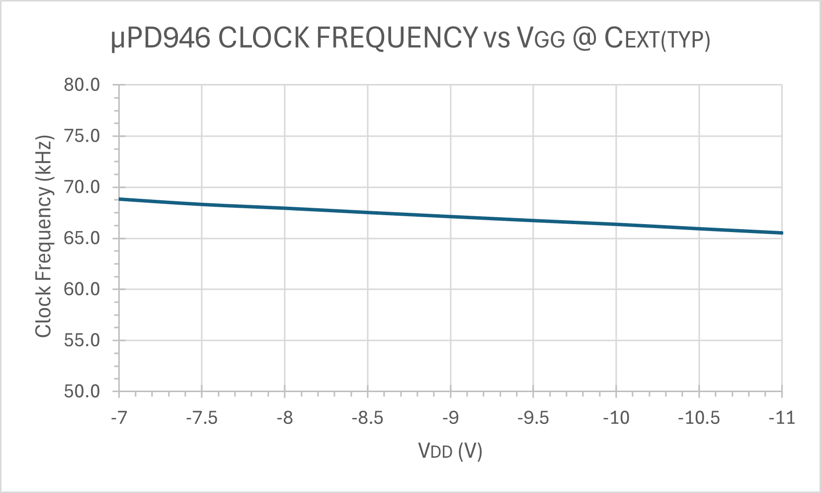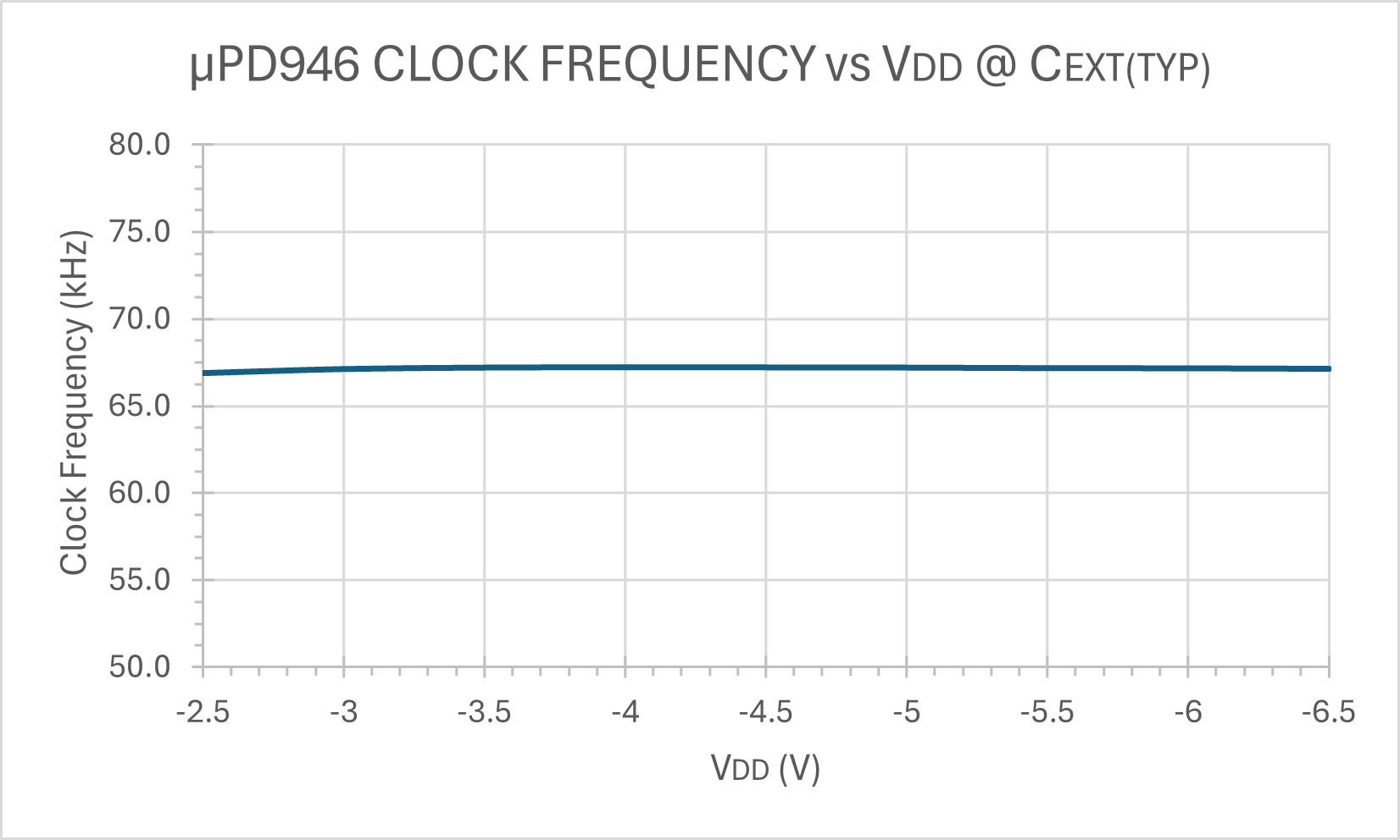 of a µPD946 Series single-chip calculator circuit. DUT: µPD946C R67089 @ VDD = -4.5 V, VGG = -9.0 V. ![]() |