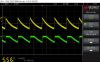 The frequency of the internal clock oscillator is set with the external two resistor/capacitor combinations REXT1/CEXT1 with nominal values of 150 kOhm and 100 pF, respectively and REXT2/CEXT2 with nominal values of 300 kOhm and 100 pF for a typical frequency of 36 kHz. Here at the Datamath Calculator Museum we operate the µPD273 Devices-under-Test (DUT) with external 150 kOhm and 300 kOhm resistors but verify its operation for other values, too.