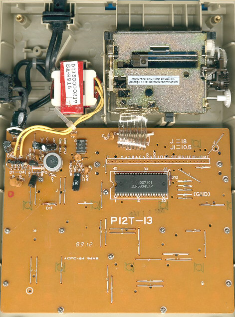 of the TI-5034 makes use of a Mitsubishi M58345AP single-chip calculator circuit, the display, a printer assembly and power supply.