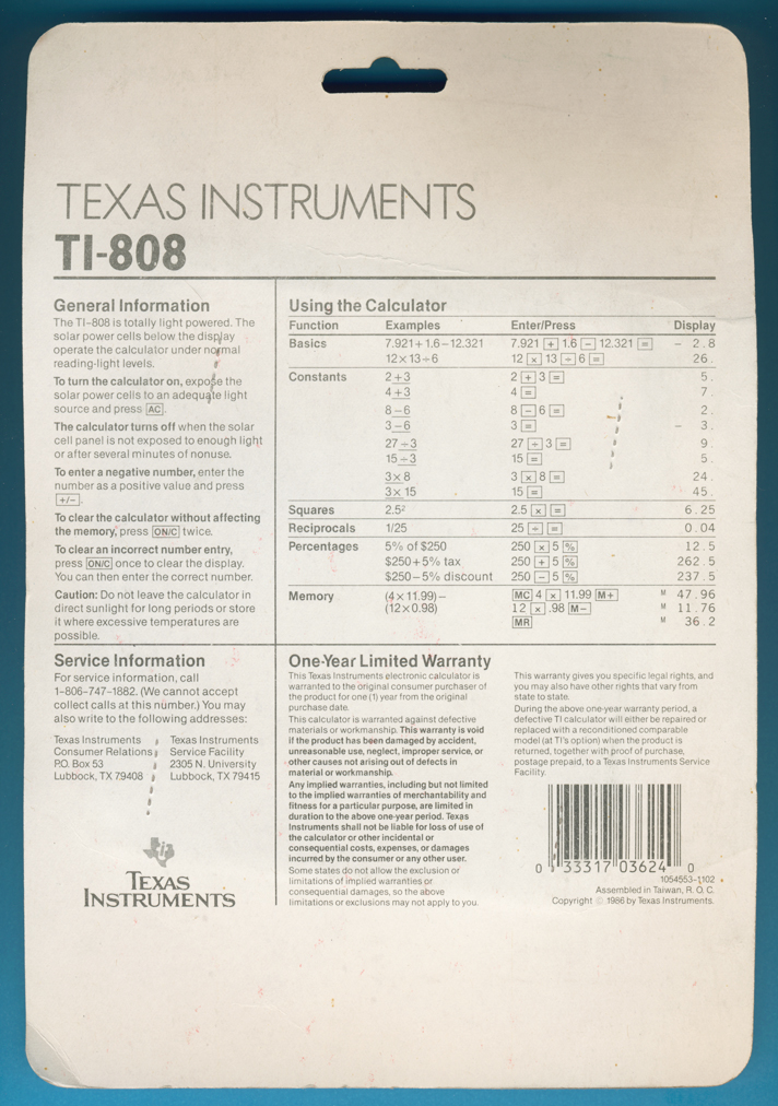 sales box of the TI-808 sold around