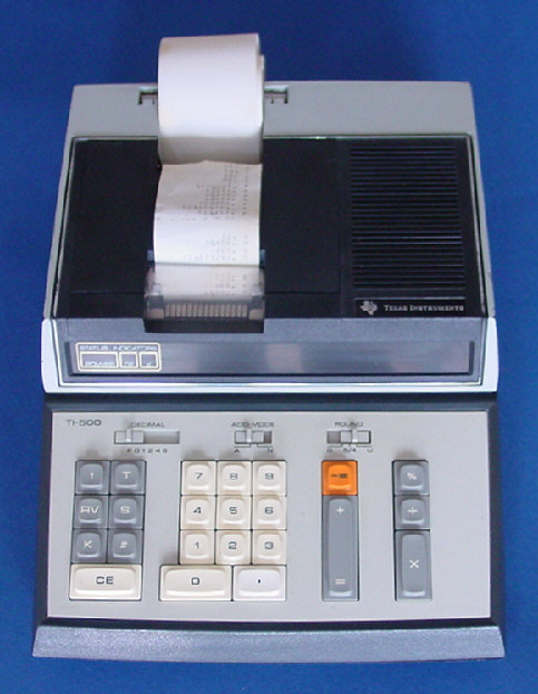 If you search in the history of Texas Instruments for the first printing calculator you'll find the TI-5050 introduced one year after this TI-500. The TI-5040 featured the first combination of a display and a printer in a desktop housing.