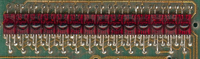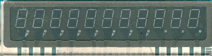 The following calculator generation manufactured by Texas Instruments like the SR-11 or SR-50 used single digit modules with a cylindrical plastic lens to enhance the readability. The next picture taken from a SR-50 gives you an idea of the architecture of the complete display. The lens is removed for better visibility: