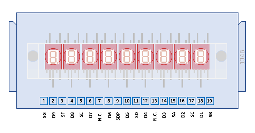 Note: The DIS134C Display module has the pins of Segment B, Segment C and Decimal Point (Segment DP) of the leftmost digit cut.