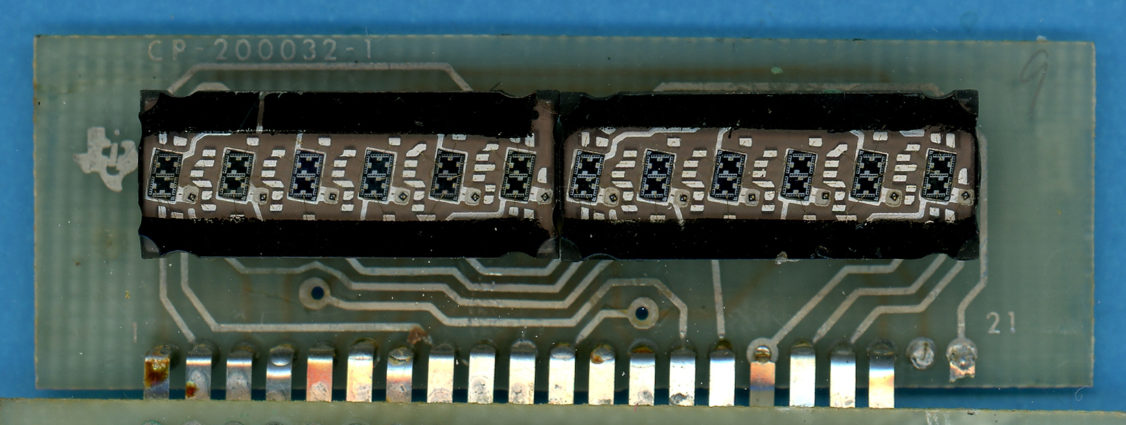 of the CP-200032 Twelve-Digit Calculator Numeric Seven-Segment LED Display. PCB Technology, 21-pin Package. 12 Digits, Common Cathode, 0.1" Character Height. |