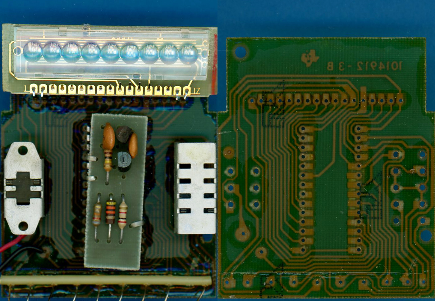 (PCB) of a Little Professor (1976 Version B) educational toy with its (mirrored) backside.