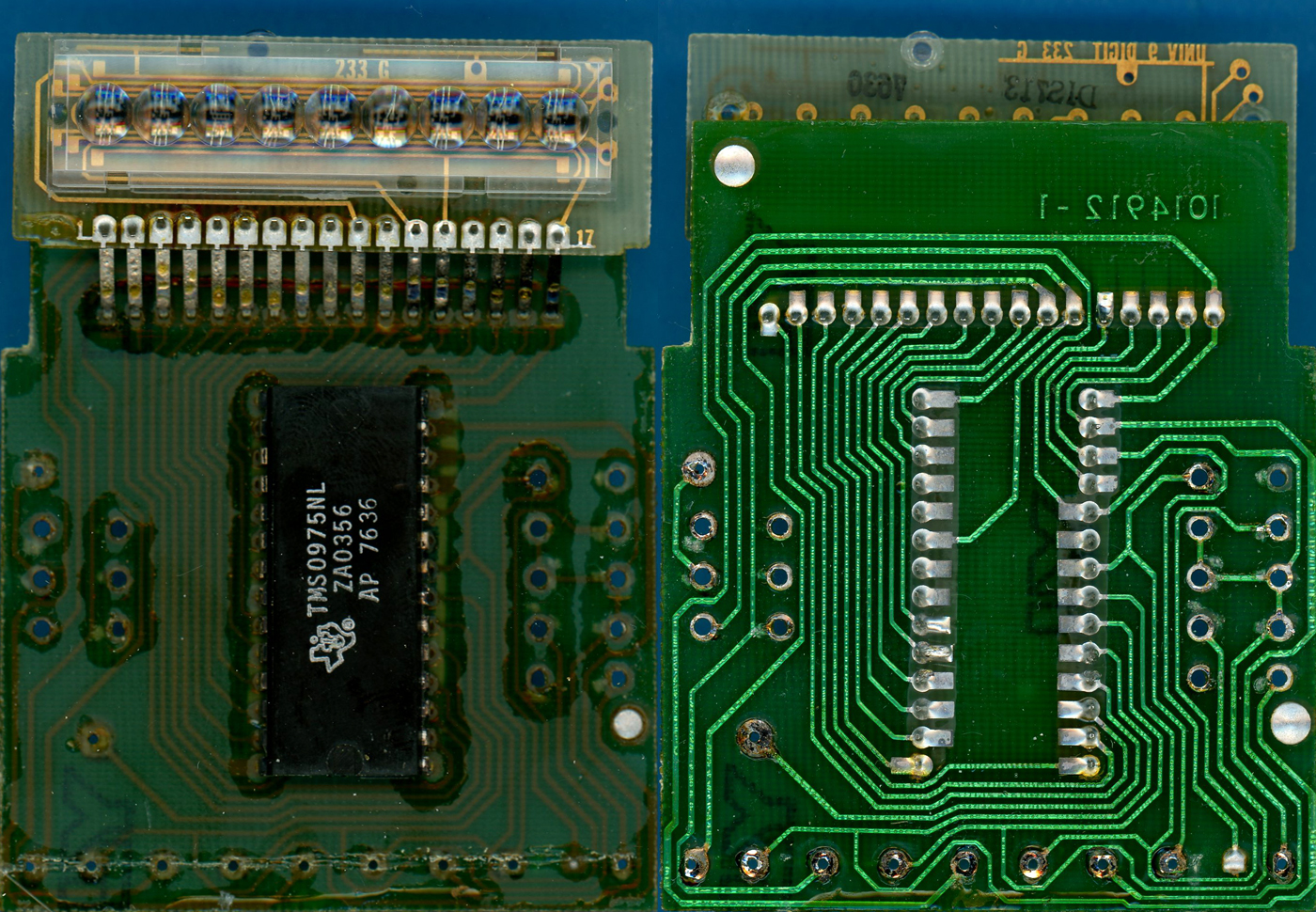 (PCB) of a Little Professor (1976 Version A) educational toy with its (mirrored) backside.