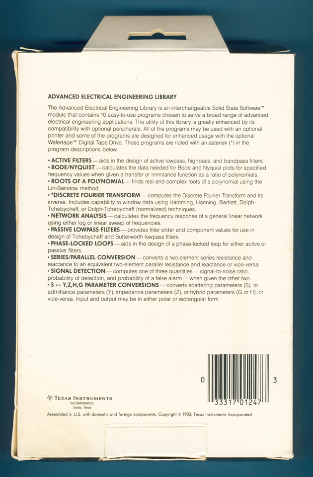 ADVANCED ELECTRICAL ENGINEERING Solid State Software Cartridge (SSSC) sold around 1983 in the US.