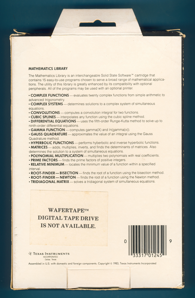 MATHEMATICS Solid State Software Cartridge (SSSC) sold around 1983 in the US.