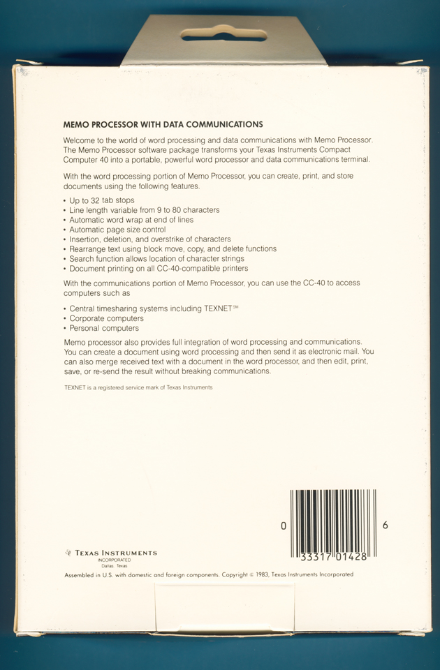 This SS-3004 MEMO PROCESSOR SSSC for the CC-40 was manufactured