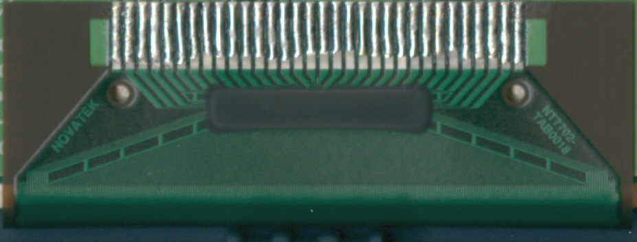 240 pixel gray-scale LC-Display needs a total of three drivers. We located this Novatek NT7702 row-driver.